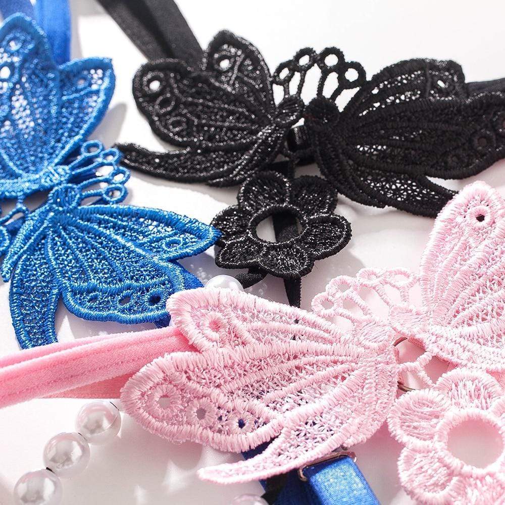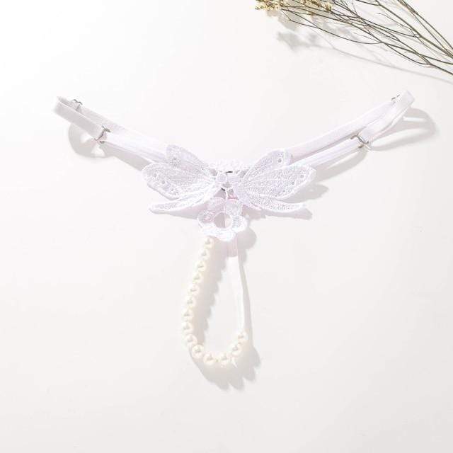 Het delicate vlinderdetail aan de voorzijde en de parels in de kruisopening zorgen voor een charmante en verleidelijke uitstraling. Gemaakt van zacht spandex en verkrijgbaar in zes prachtige kleuren, perfect om elke lingerielook extra flair te geven.