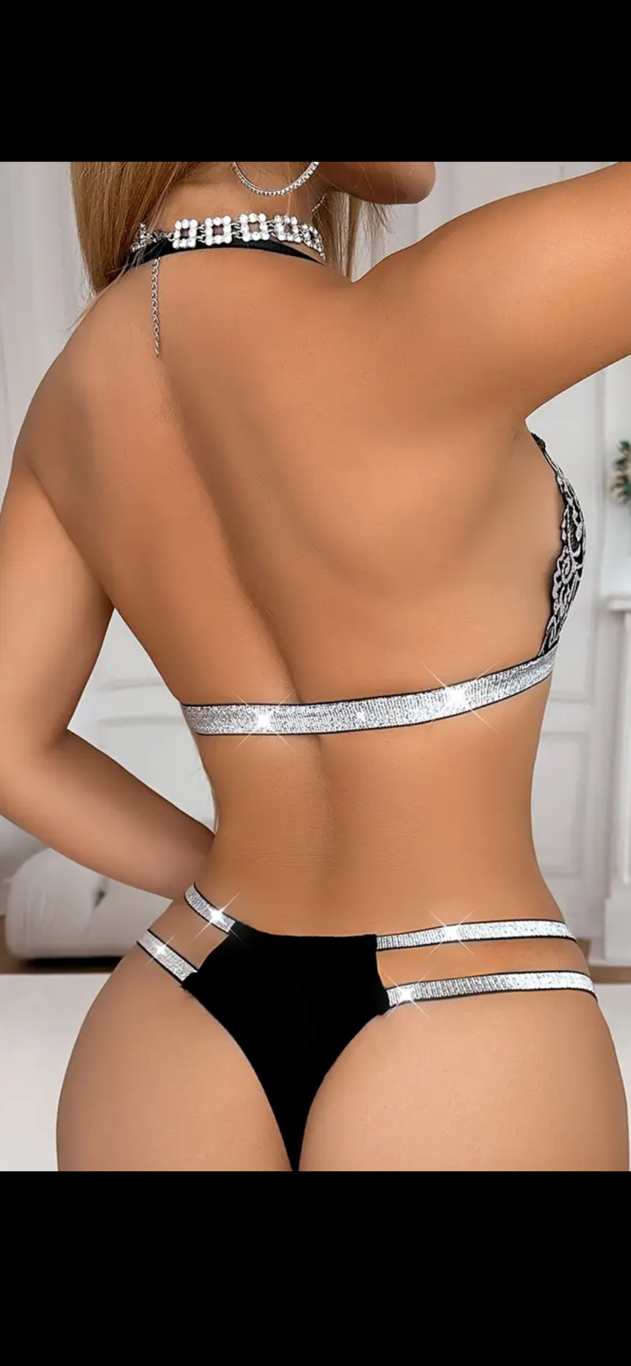 De black diamond elegance set - zwarte kant & zilveren accenten biedt je een complete en harmonieuze outfit met hoogwaardige materialen en stijlvolle details. Een tijdloze keuze voor elke gelegenheid.