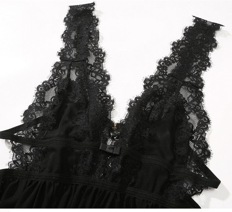 De kanten afwerking, het diepe decolleté en het sierlijke rugdetail creëren een fascinerende, vrouwelijke look. Het bijpassende mesh-tanga zorgt voor een compleet verleidelijke set. Beschikbaar in twee prachtige kleuren.