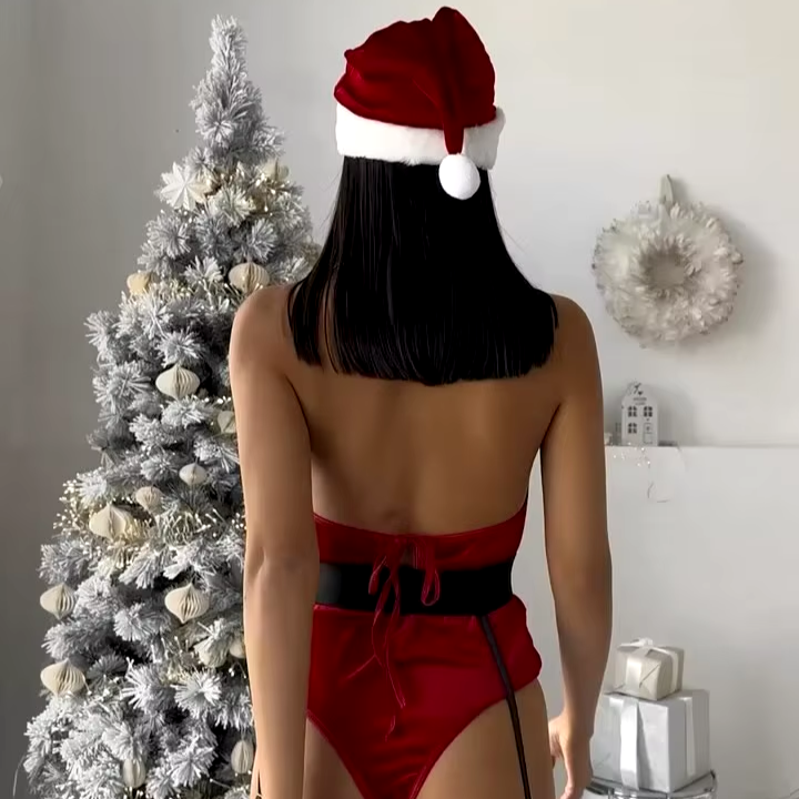Christmas Velvet Bodysuit & Bunny Ears Set