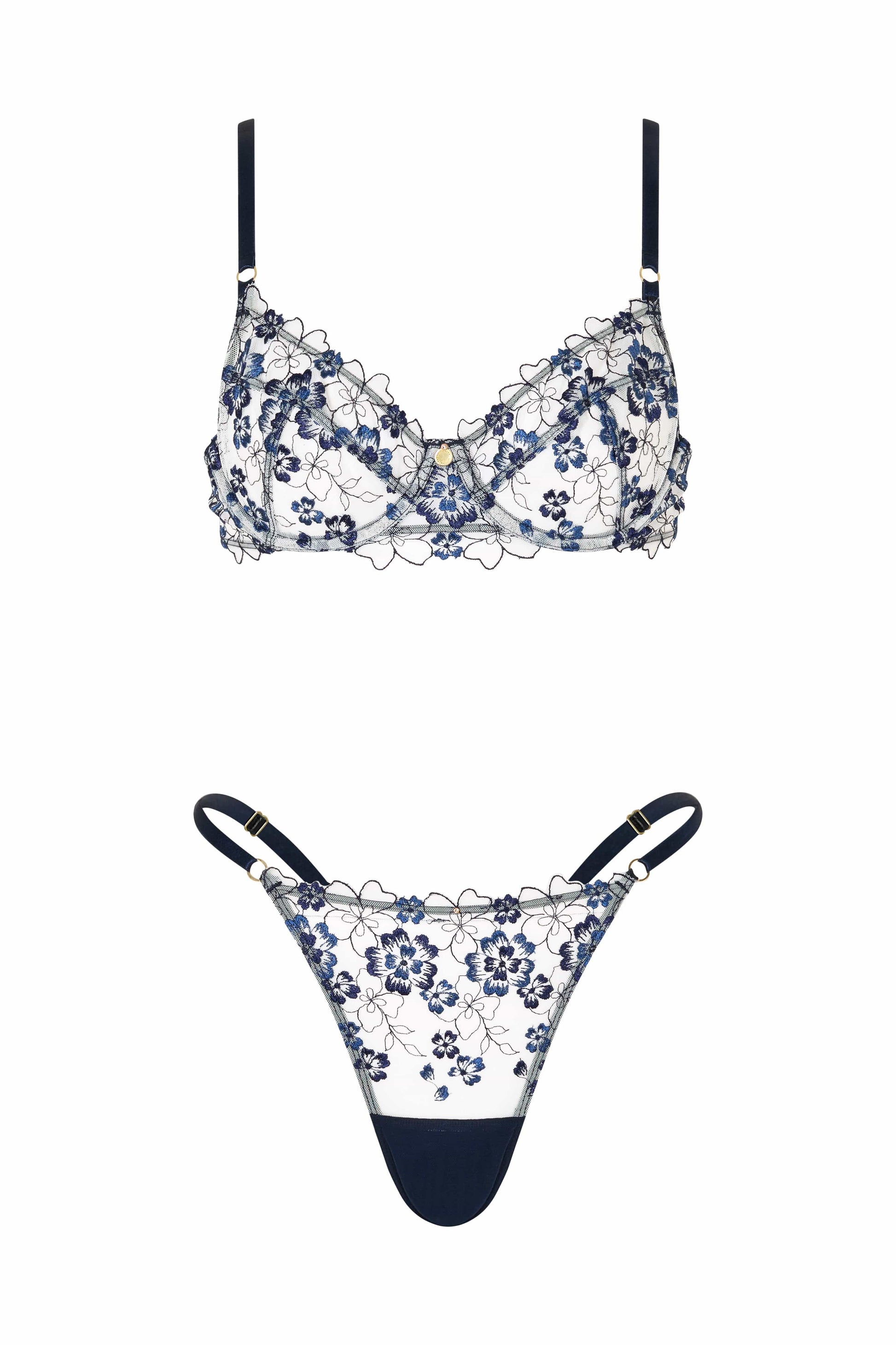 Blossom – Geborduurde Beugelbh met Blauwe Bloemen