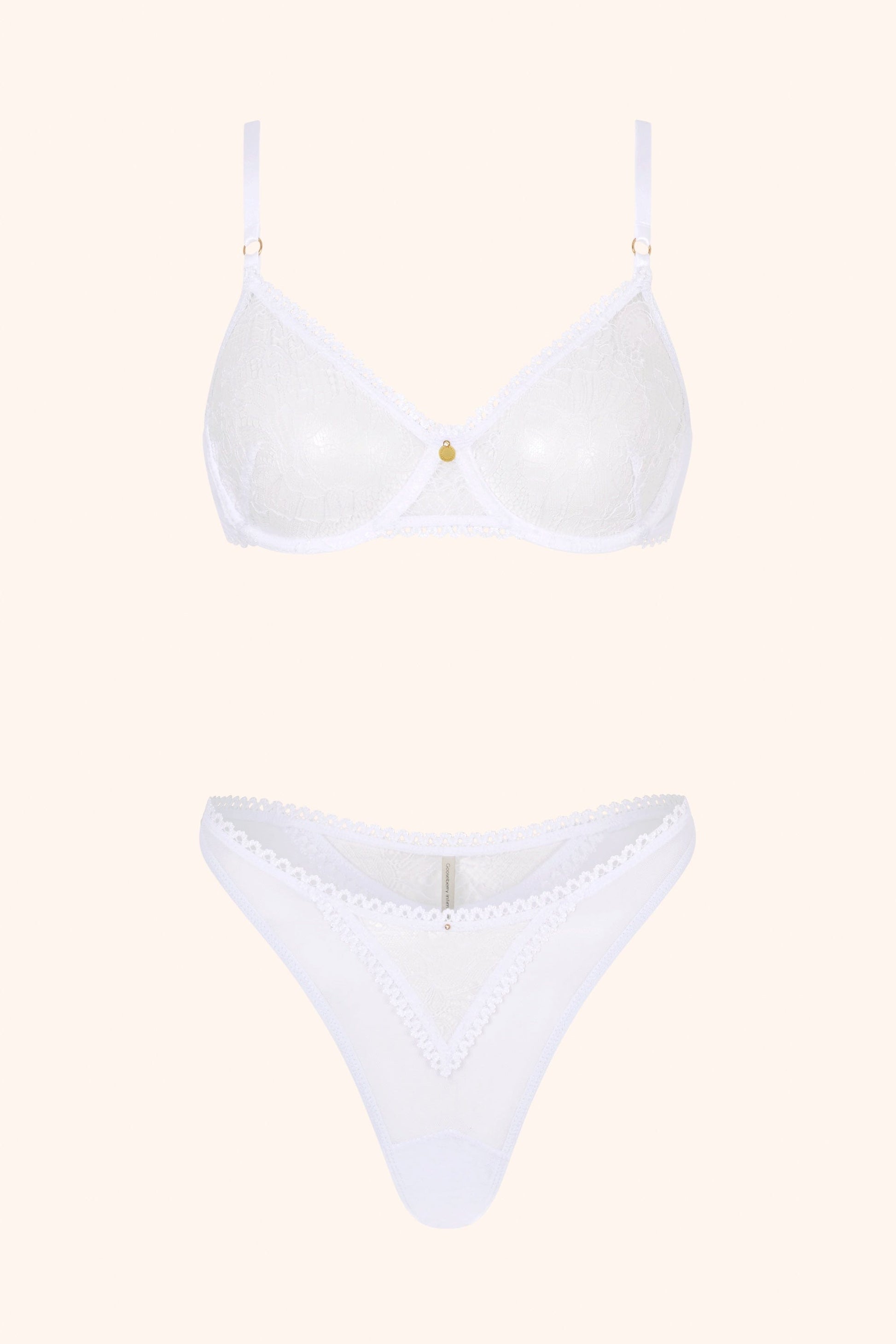 De Irresistible Bh combineert luchtige geborduurde mesh met fijn kant voor een look die net zo zacht aanvoelt als ze eruitziet. De beugels geven subtiele steun zonder te knellen, terwijl de verstelbare bandjes en gouden details zorgen voor een perfecte, elegante pasvorm. Geen franje, geen compromis — gewoon pure, dagelijkse verleiding.