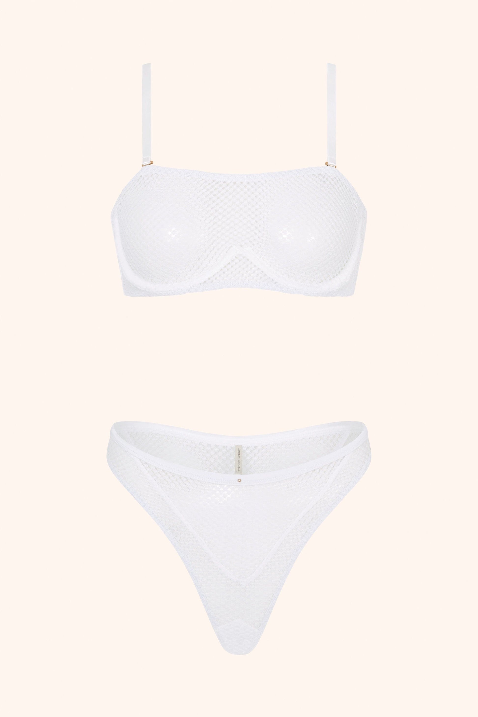 De Sweet Nothing Bh is perfect voor wie houdt van subtiele elegantie zonder overdaad. De balconette-bandeaustijl biedt natuurlijke ondersteuning dankzij de beugels, terwijl de afneembare bandjes veelzijdigheid en vrijheid geven. Gemaakt van transparante geborduurde mesh die zacht aanvoelt en prachtig aansluit op de huid.